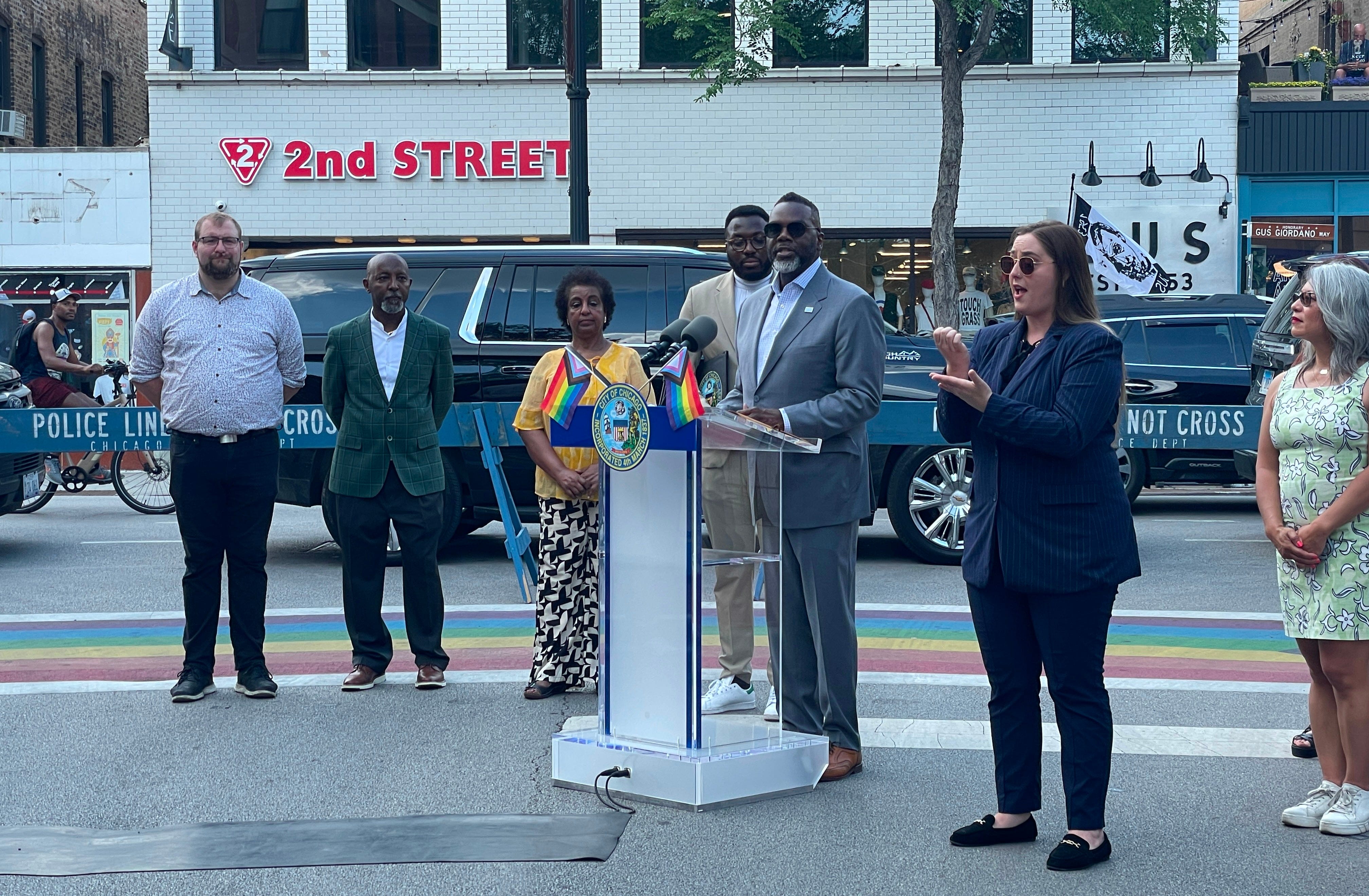 It’s a sultry June morning in Chicago. Steaming hot air ascends from the tarmac on North Clark Street, where Chicago mayor Brandon Johnson is giving a short address to Andersonville residents.